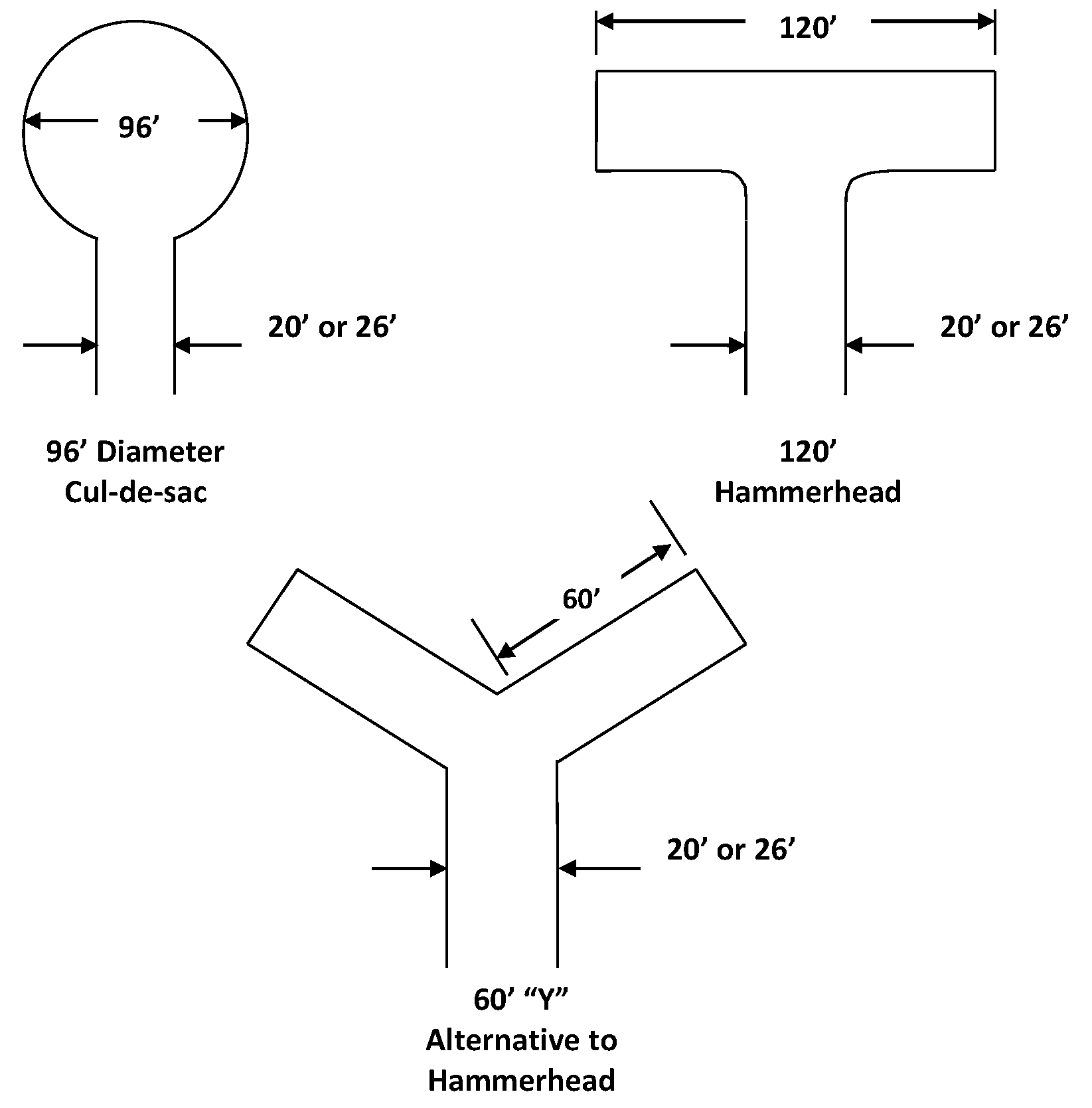 Dead-end fire apparatus access roads in excess of 150 feet shall be provided with width and turnaround provisions in accordance with the Table and Diagrams below: