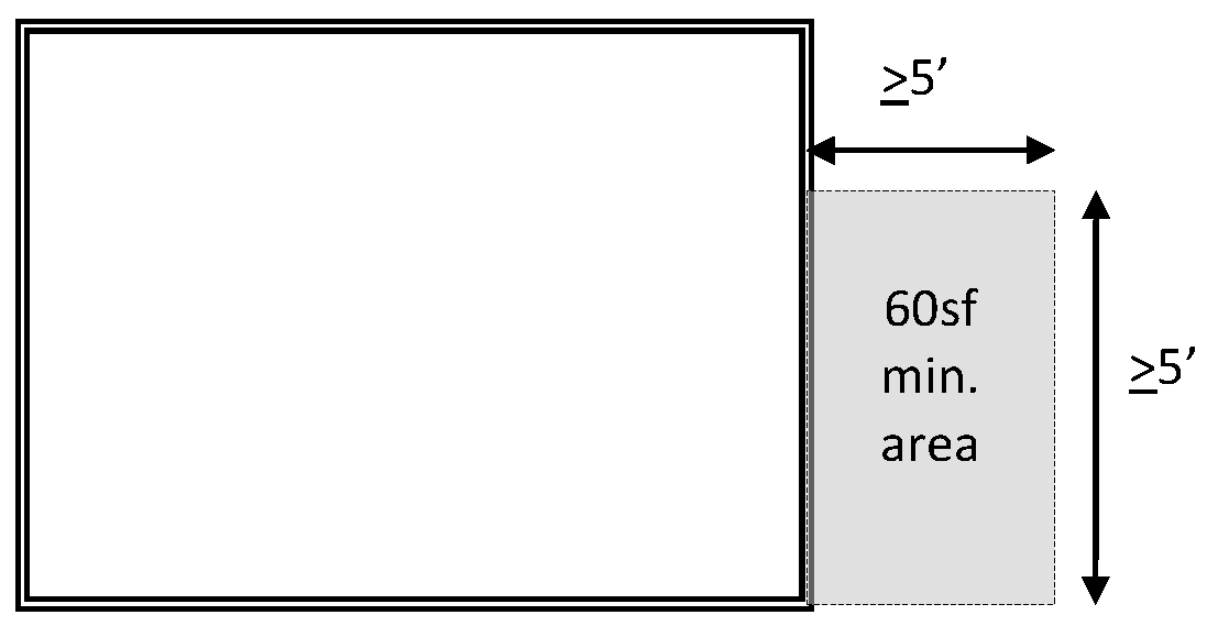 The floor of the covered main entry porch shall have minimum dimensions of not less than five feet in any direction (length or width).