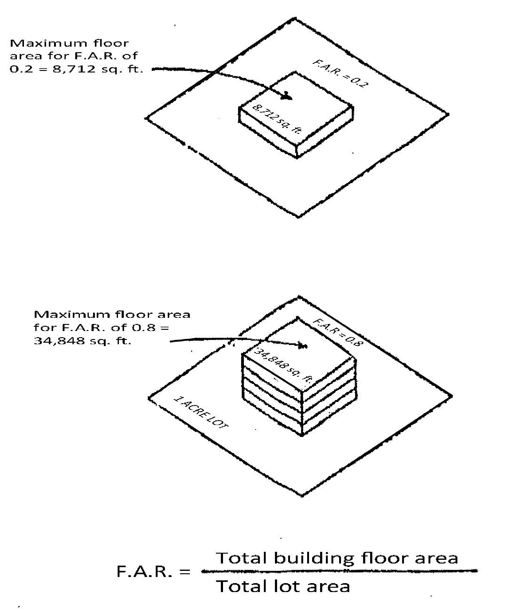 Generally. A floor area ratio is a measurement of the intensity of development on a site. For purposes of this Land Development Code, floor area ratios (FAR) are provided only for nonresidential development (see section 6.01.02(e) for impervious surface ratio).