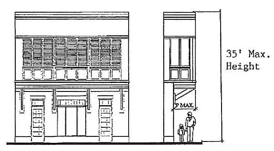 The July 2004 Town Center Design Guidelines adopted herein are modified as follows: page 10, under the heading, building height, lines 2 through 5 are hereby stricken. Also, the drawings illustrating a balcony and "jumba" located in the middle of the page are modified to include the notation "35' Max. Height" with a line indicating the distance from the ground to the highest portion of the illustrated structures. See the following exhibit A in subsections (b)(1) and (2):