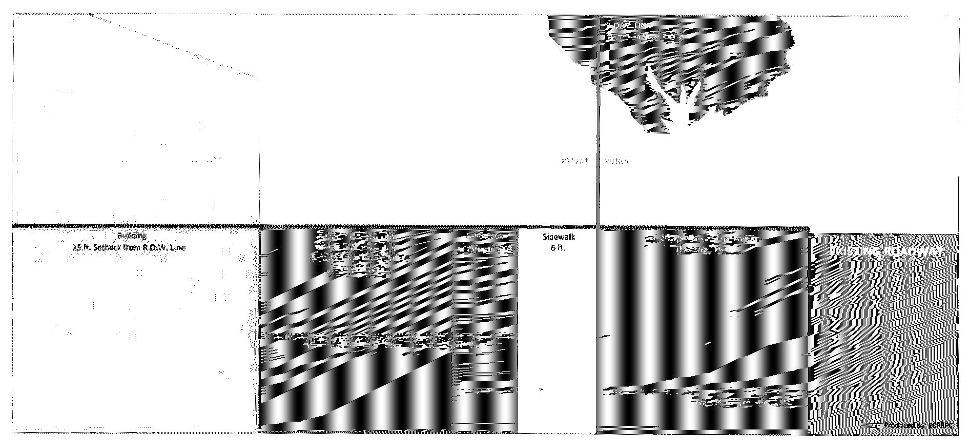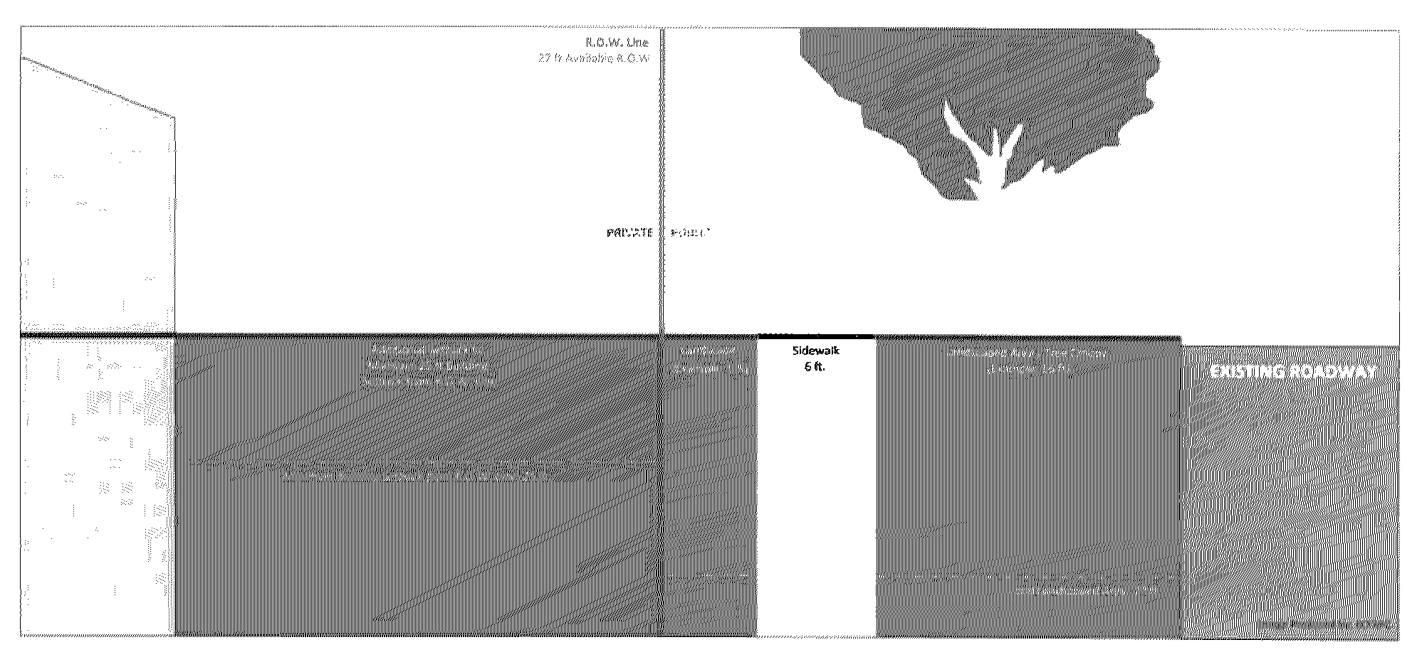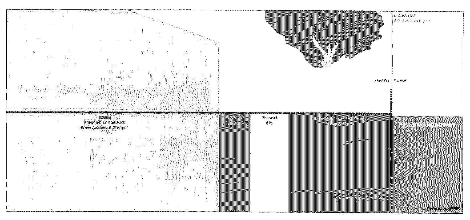 Depending on the existing depth of available right-of-way for streetscape, the twenty-seven (27) feet will either be entirely within the right-of-way or entirely on the subject property under development or a combination of both the available right-of-way and the subject property. For example, as illustrated in section 20-610 of this article, there are three (3) possible required streetscape scenarios: