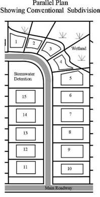 A second parallel development plan that shows the number of dwelling units that could be developed on the site with a conventional subdivision for the purpose of determining base density.