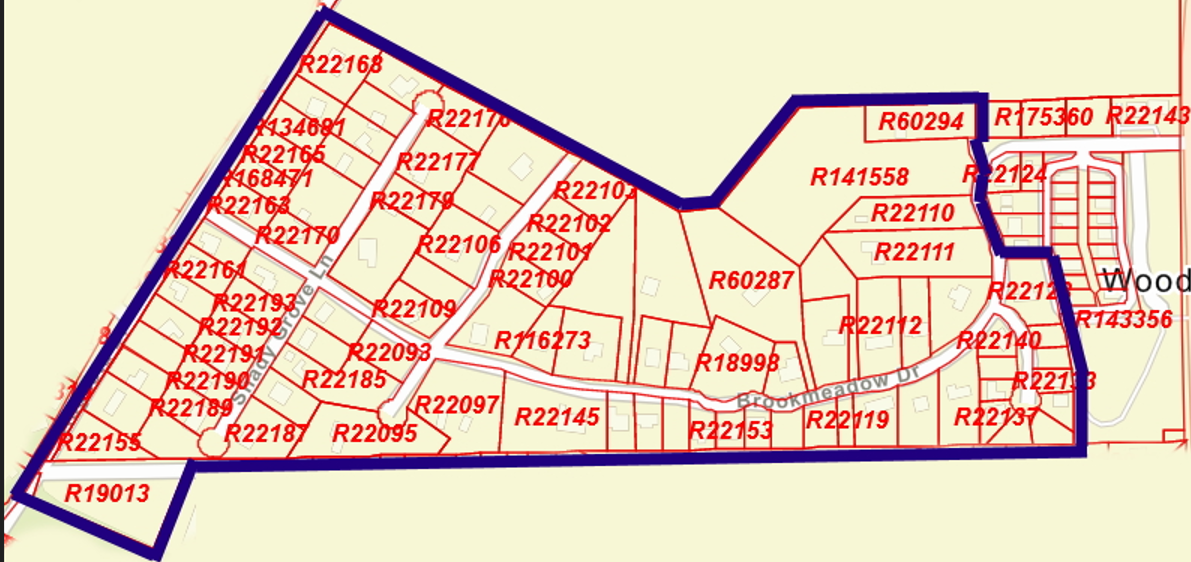 Location. The location of the Brookmeadow Overlay District shall consist of all portions of the following properties contained within the bold blue outline: