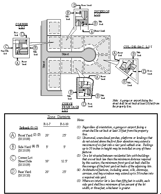 Figure 16-2: R-1 Zone - Yard Setbacks (Shown on various lot types)