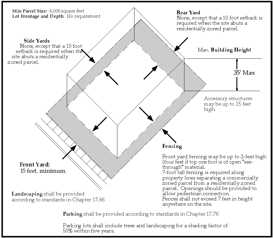 Building Height. The maximum height of commercial structures shall be thirty-five (35) feet; the maximum height of accessory structures shall be fifteen (15) feet.