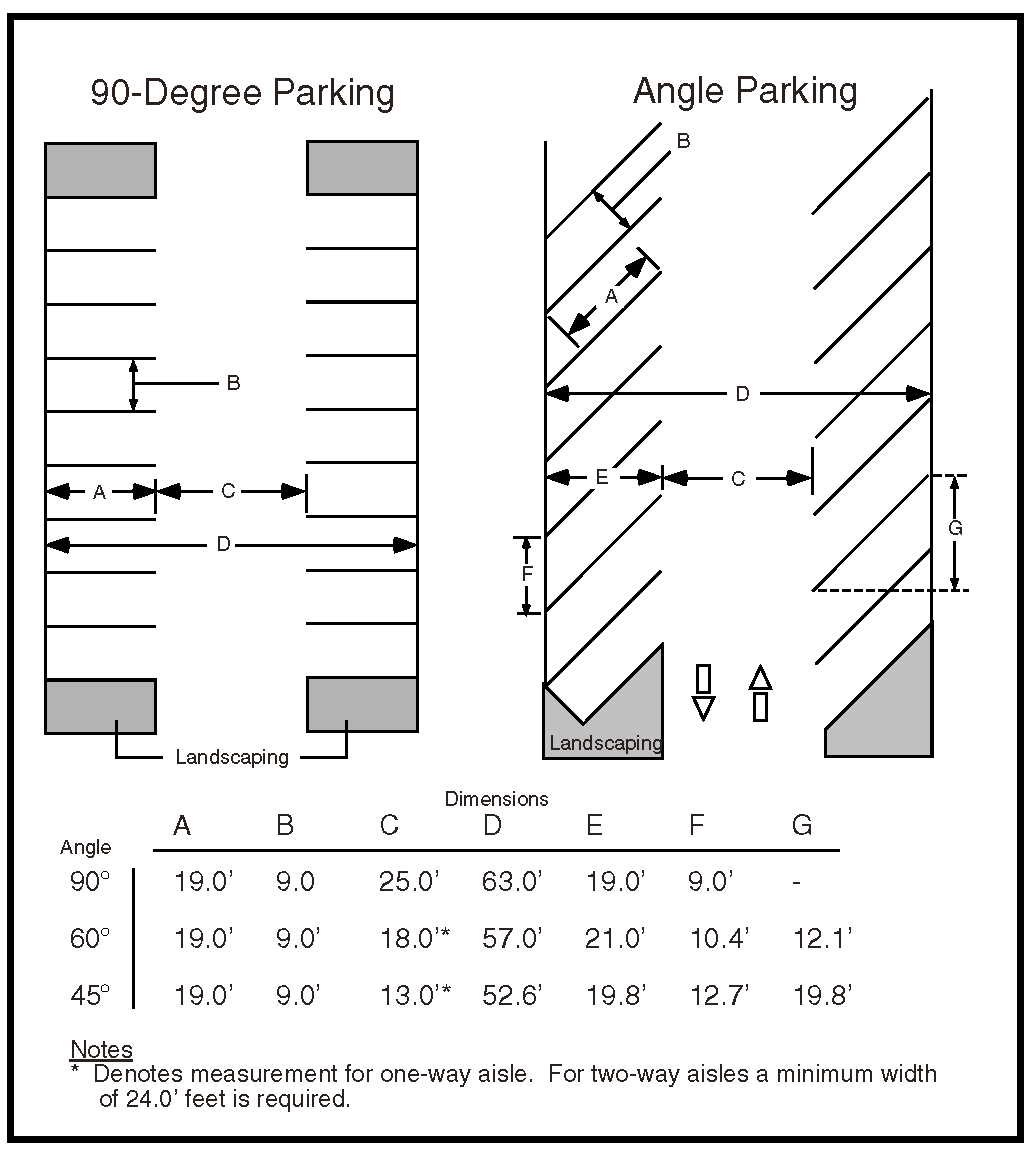 Design Dimensions. Parking lots shall be designed to be consistent with the standards, dimensions and requirements of the details contained in Exhibit 68-1. The construction of parking lots shall be consistent with the improvements standards contained in Woodlake's Improvements Manual.