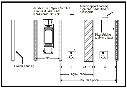 Handicapped Parking Spaces. Handicapped parking stalls shall be provided per the Uniform Building Code. Handicapped parking stalls shall be designed consistent with the illustrations shown in Figure No. 2.