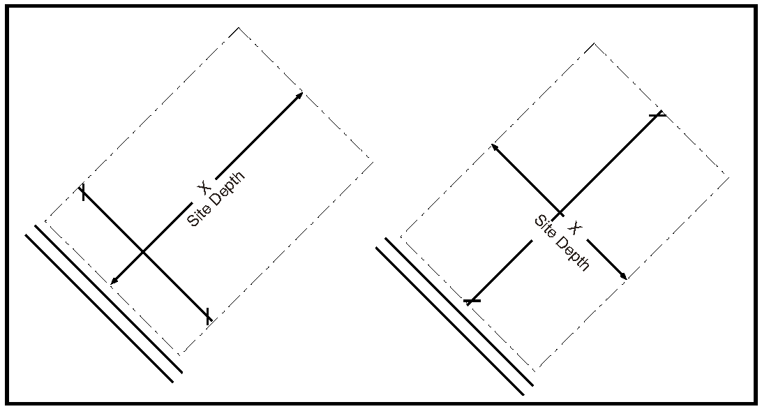 "Site depth" (see Exhibit 72-2 for illustration of site width and depth) means the horizontal distance between the front and rear property lines of a site measured along a line midway between the front side property line.