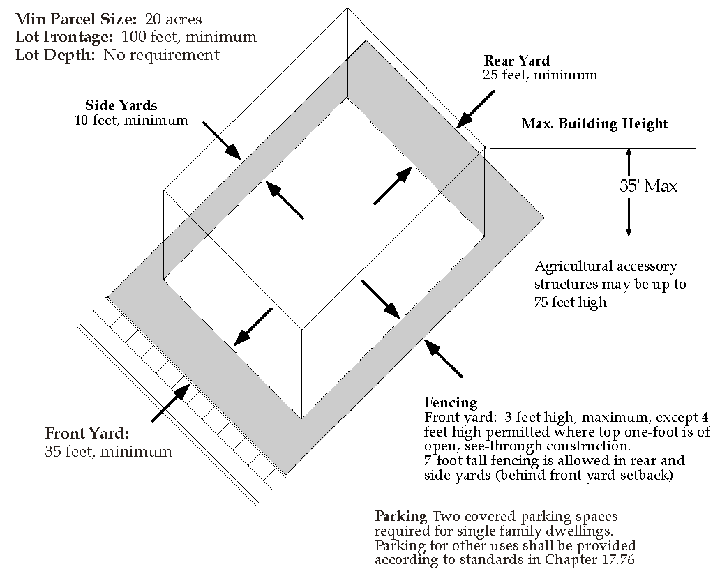 Building Height. The maximum height of residential structures shall be thirty-five (35) feet; the maximum height of agricultural accessory structures shall be seventy-five (75) feet.