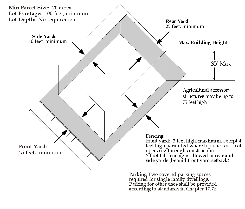 Building Height. The maximum height of residential structures shall be thirty-five (35) feet; the maximum height of agricultural accessory structures shall be seventy-five (75) feet.