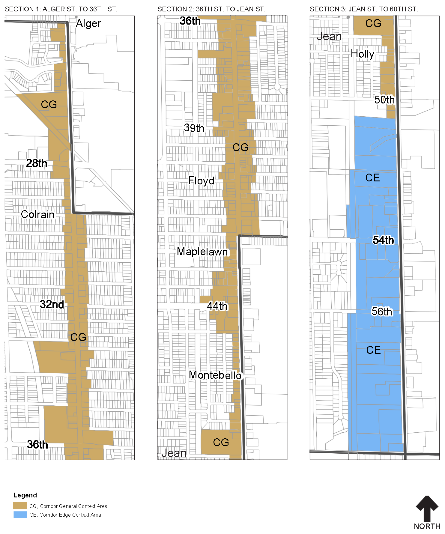 For the Division Avenue corridor, the boundaries generally include all lands that abut Division Avenue from Alger Street south to 60th Street.
