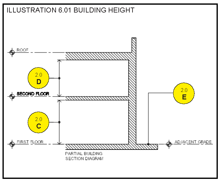 Height, building: The number of stories allowed by either the building type and/or the context area, with actual measurement of individual stories determined according to specific building types in division 6.