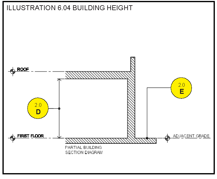 Eaves. Building eaves with a minimum ground clearance of 12 feet above adjacent grade may extend two feet maximum from the exterior wall of the building.