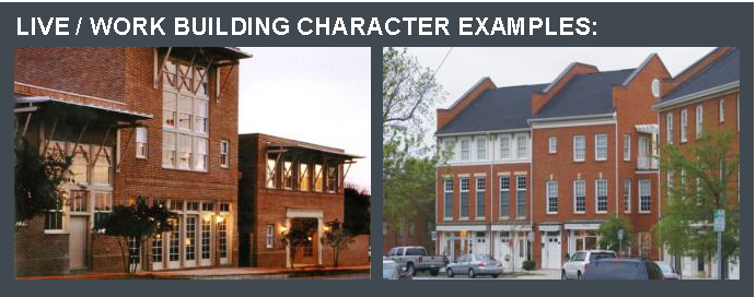 Live/work building type: A lot located and designed to accommodate an attached or detached building with integrated residence and commercial space utilized by a single-family household. The ground floor is designed to accommodate commercial uses with a single residence in the upper stories, although ground floor may also accommodate residential uses.