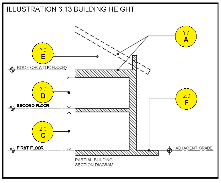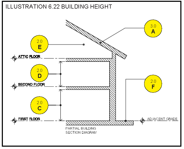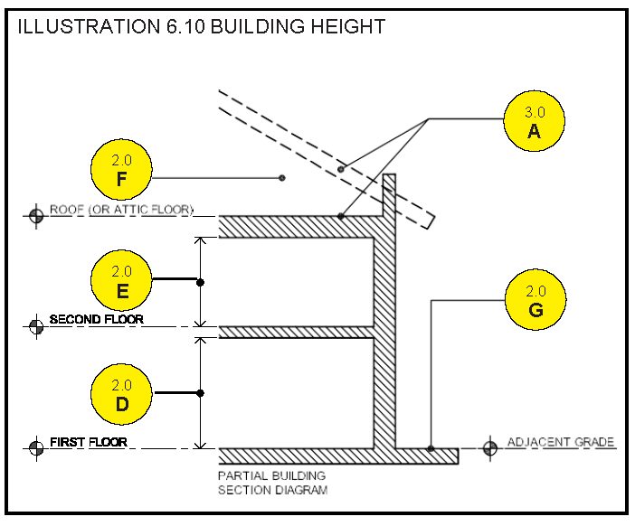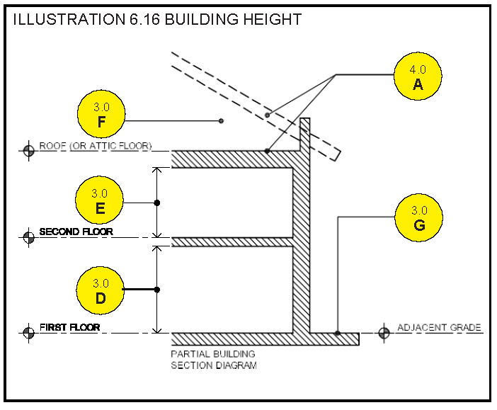 Story: The distance between any two adjacent floors or floor lines, measured as the distance between the finished floor and related finished ceiling in feet and inches. Actual story heights are regulated by building type in Division 6. Number of stories are regulated by building type and Context Area.