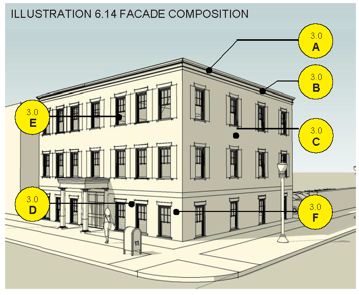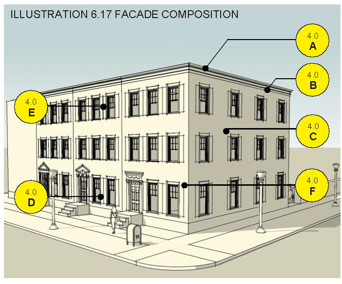 Reducing the building façade by more than 50 percent in terms of the amount of transparency. Phased construction to avoid compliance with this standard or breaking up construction such that the 50 percent threshold is avoided shall be prohibited.