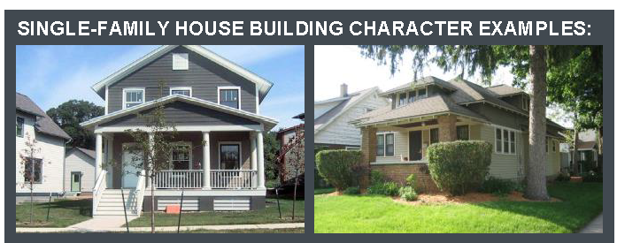 Single-family house building type: A lot located and designed to accommodate a single-family detached building with front, rear and side yards.