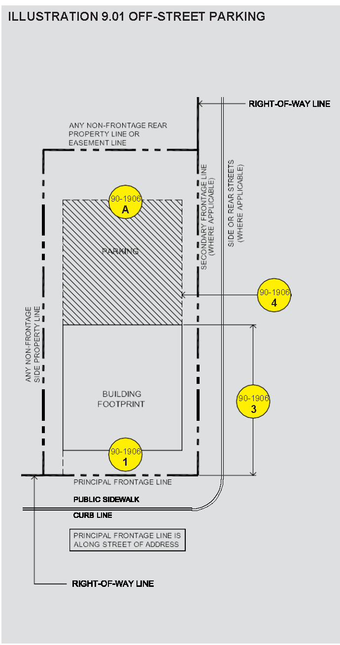 Non-frontage line: The property lines of a parcel that are not a right-of-way line or directly adjacent to a public right-of-way.