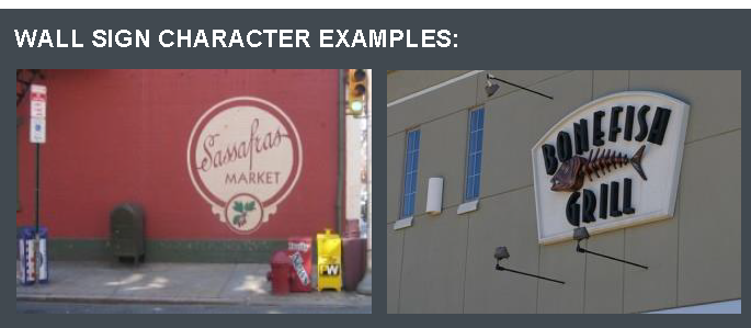 Wall sign: A sign that is painted on, incorporated in or attached directly to a building wall, with the exposed face of the sign in place parallel to the building wall.