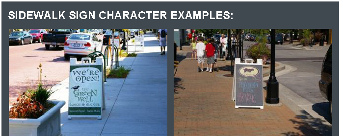 Sidewalk sign: A temporary and portable sign that is not permanently affixed to a structure or ground and is placed on the sidewalk in front of a business during normal business hours. Synonymous with sandwich board sign.