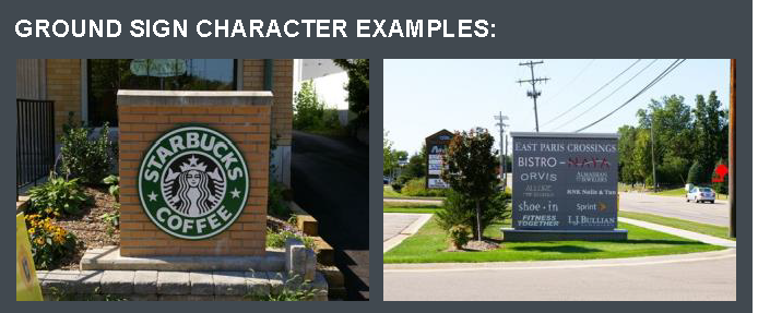 Ground sign: A free-standing sign mounted directly on the ground, on a base or supported by short poles. Not attached directly to a building or wall.