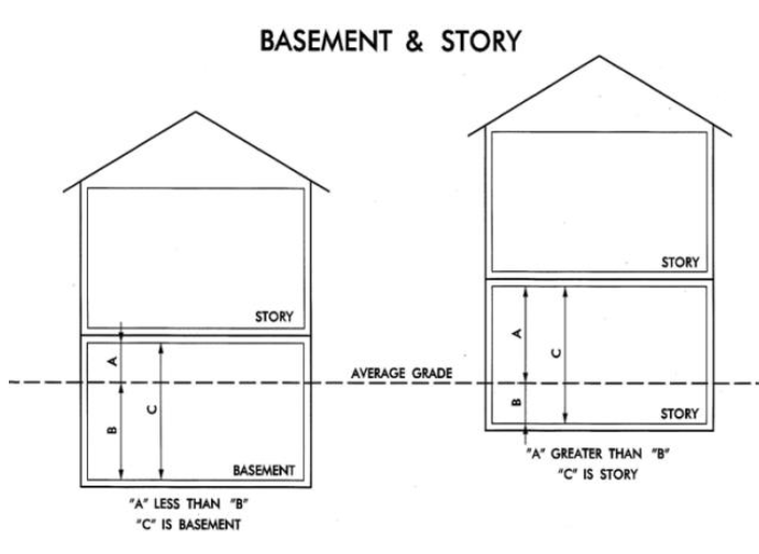 Basement: That portion of a building which is partly or wholly below grade but so located that the vertical distance from the average grade to the floor is greater than the vertical distance from the average grade to the ceiling. A basement shall not be counted as a story. Figure 90-202-1.