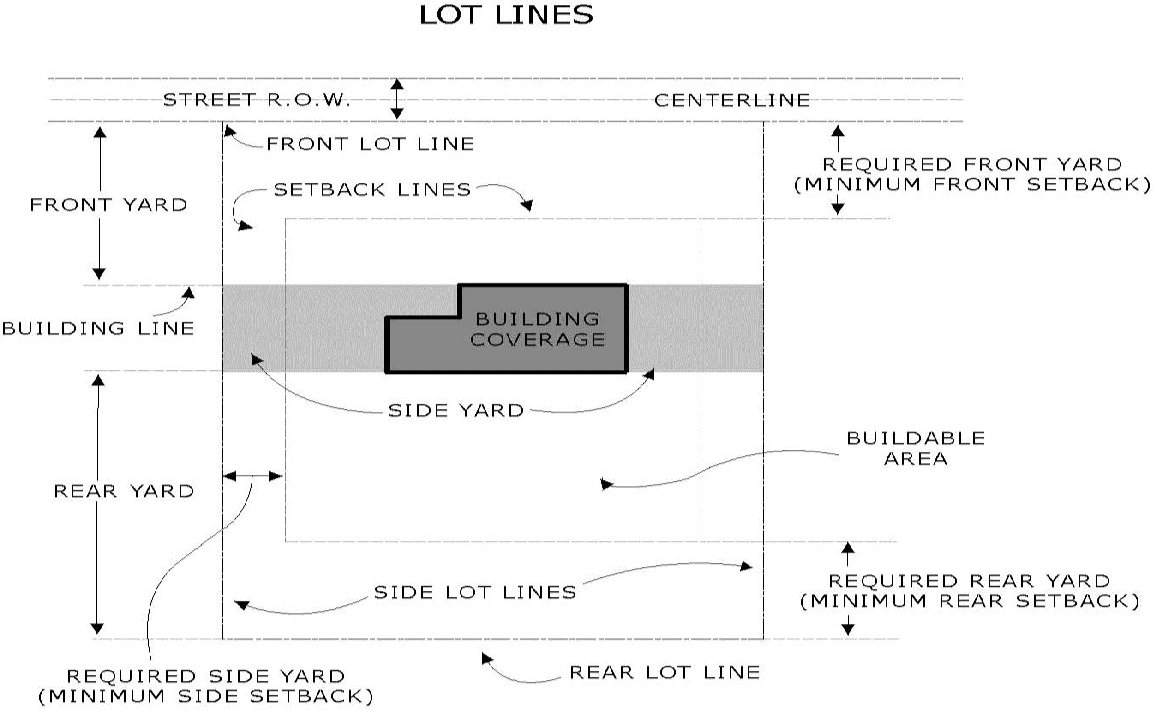 Setback line: A line marking the setback distance from the lot line which establishes the minimum required front, side, or rear yard of a lot.