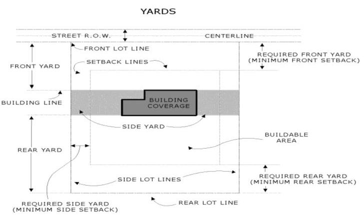 Required yard: That portion of a lot that meets the required minimum front, side, or rear setback of the zoning district in which the property is located.