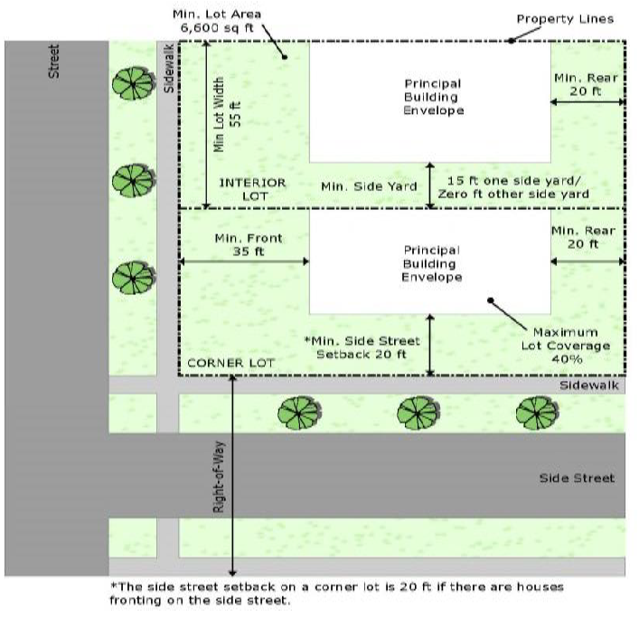Minimum lot size may be reduced to 5,500 square feet if the rear of such lots border designated open spaces.