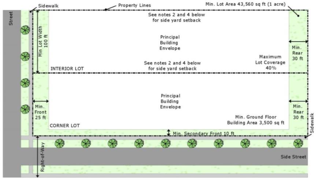 Side yard building setback for principal non-residential buildings shall be a minimum 25 feet.