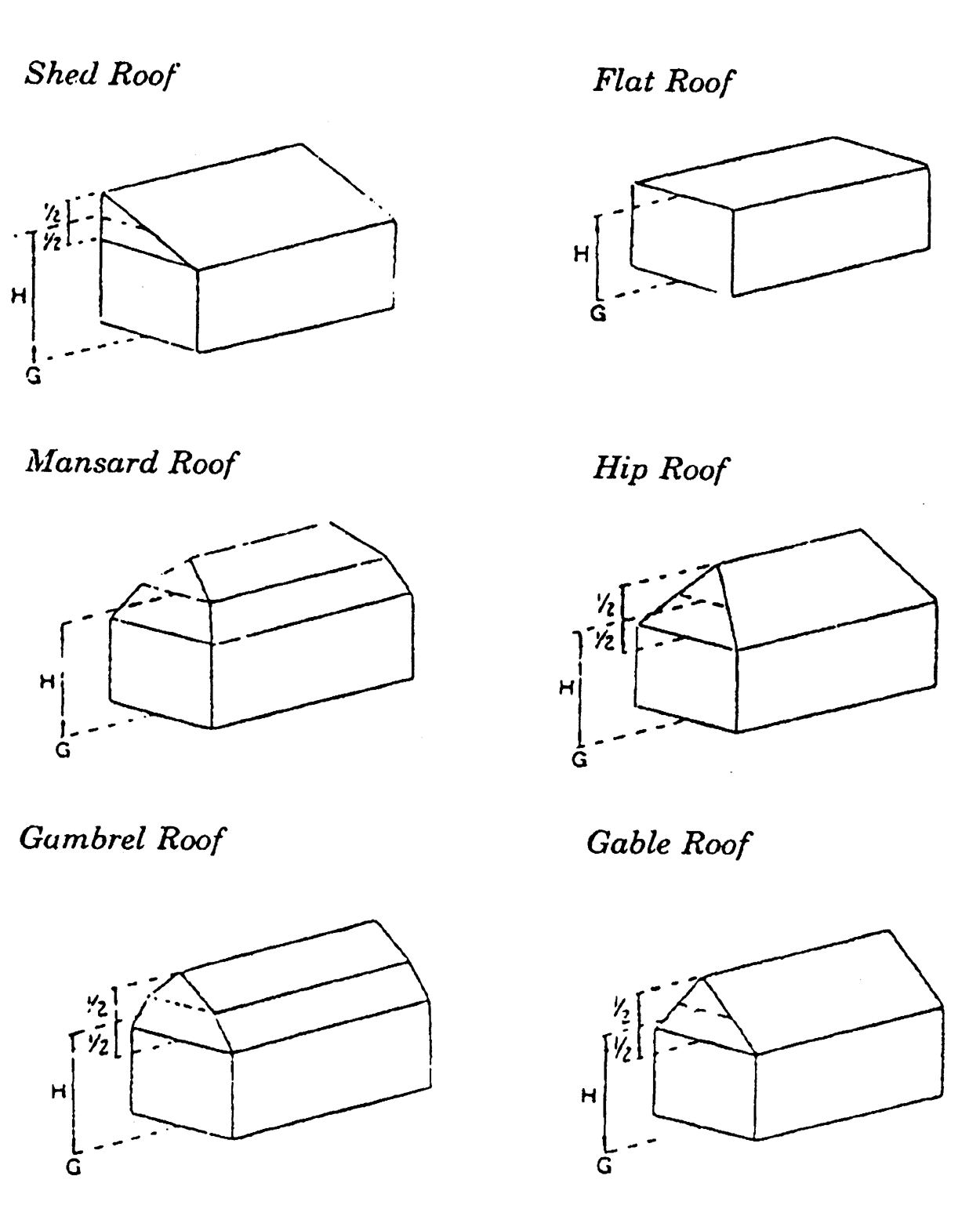 Building height: The vertical dimension measured from the average elevation of the finished lot grade at the front of the building to the highest point of a flat roof; to the deck line of a mansard roof; and to the average height between the plate and ridge of a gable, hip or gambrel roof (see illustrations at end of this article).