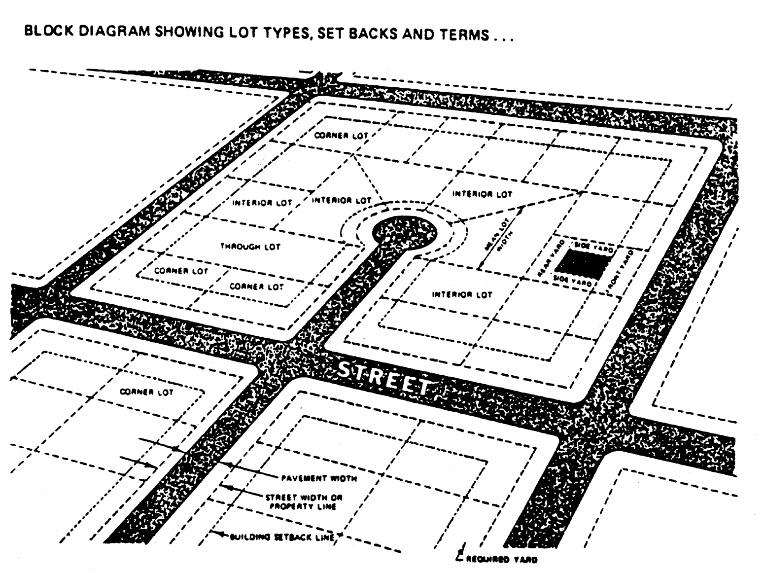 Setback: Distance between the lot line and building line. Except front yard setback is the distance between the lot line and the nearest architectural projection, such as the vertical face of the first step of the front porch.