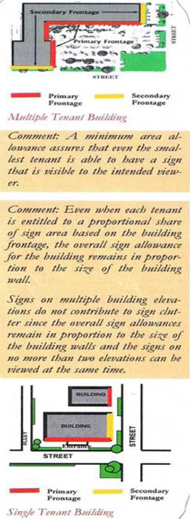 For buildings with two or more frontages, the length and allowable sign area shall be calculated separately for each such frontage.