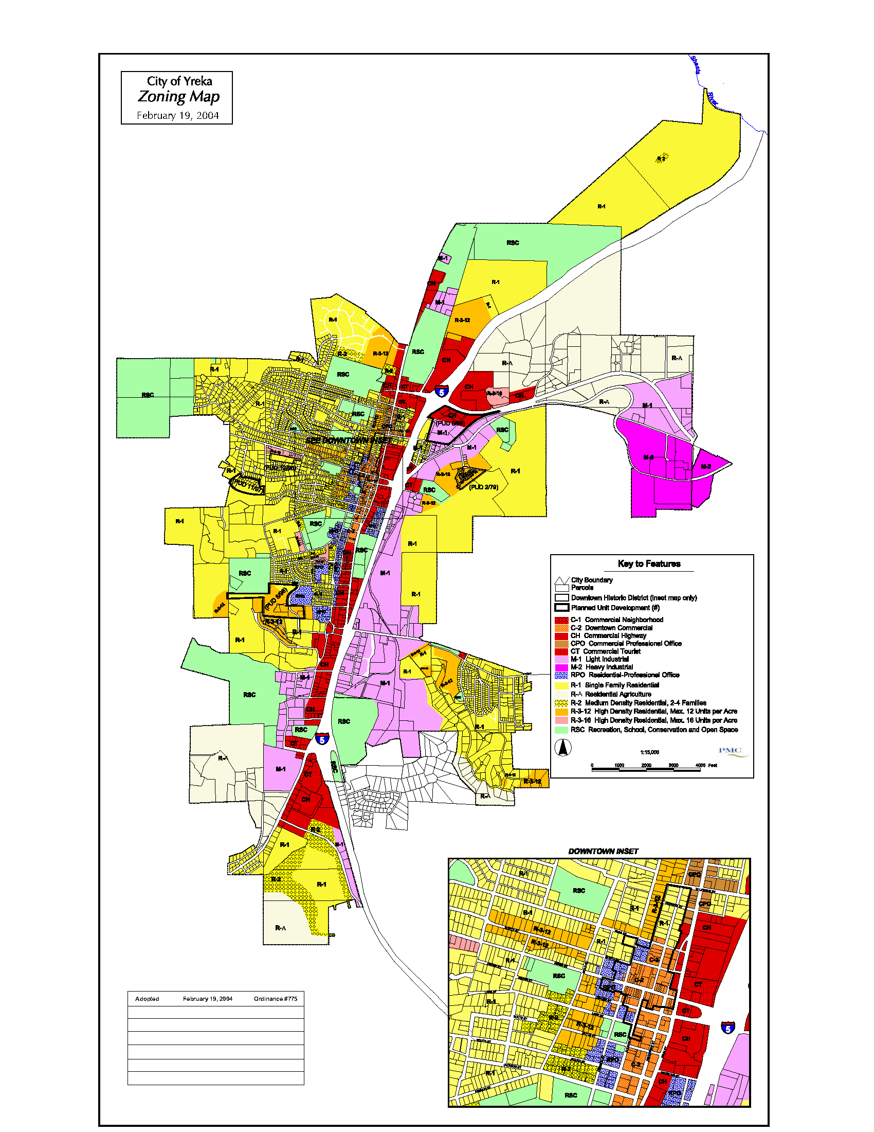 The designations, locations an d boundaries of the districts established are delineated upon the map entitled "City of Yreka, California, Zoning Map" dated March 20, 1980, and as amended on February 19, 2004, which map and all notations and information thereon are made a part of this title by reference, which map is on file in the office of the City Clerk.