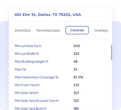 Simplify your workflows by letting our platform conduct the Land Use compliance analysis for a property or market.